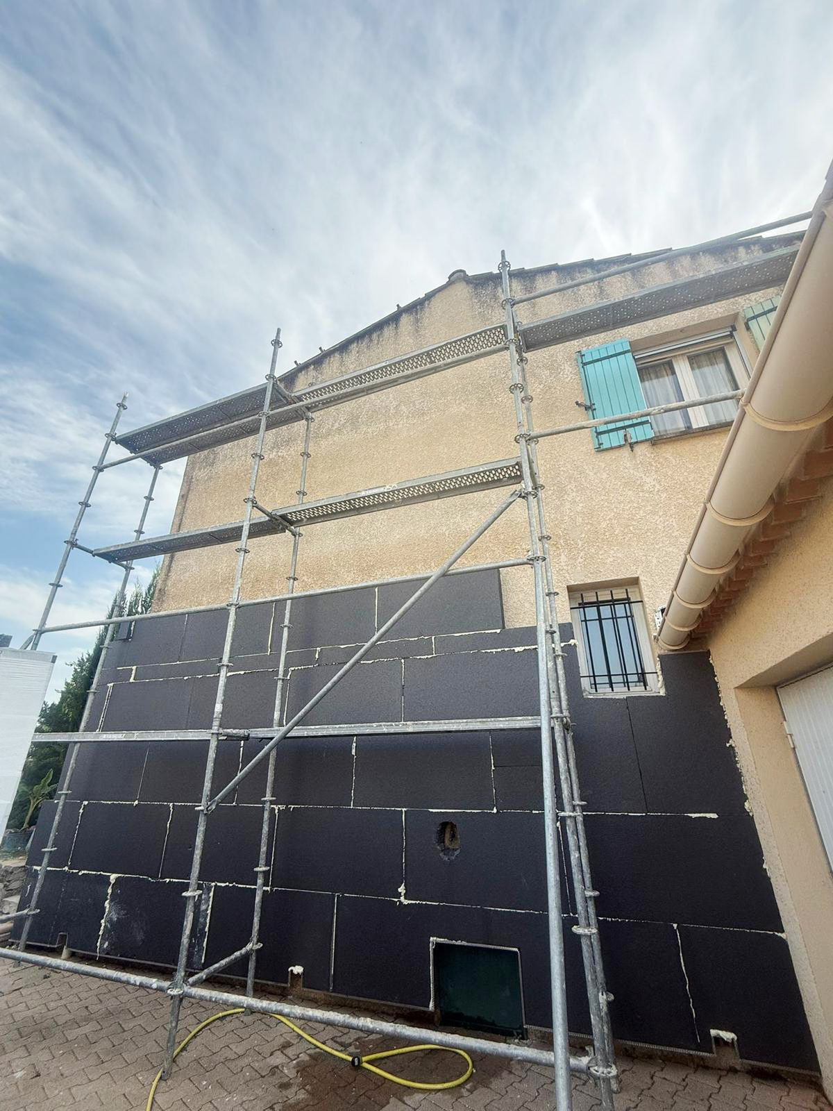 Le chantier prévoit l'isolation de 224 m² et le ravalement de 36 m² de surface de mur extérieur avec une finition crépi de couleur blanc cassé (RAL OK00) et l'installation de report de gonds pour les volets battants.